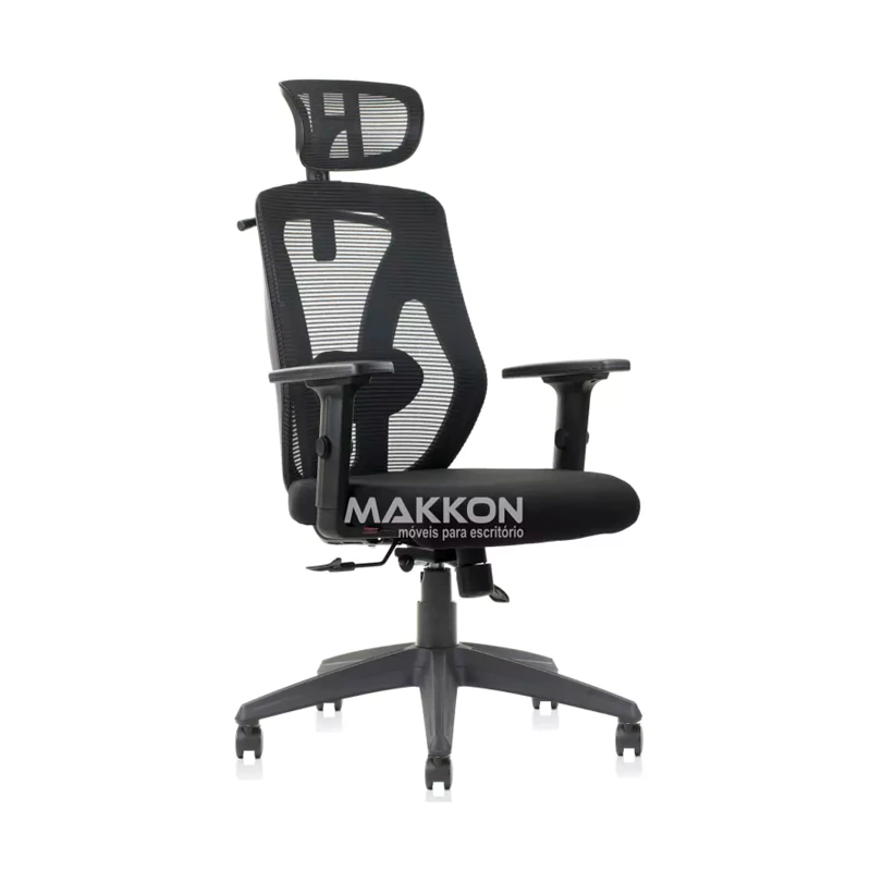Apoio de cabeça em tela com ajuste de altura e angulação